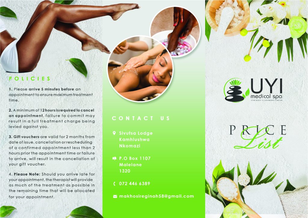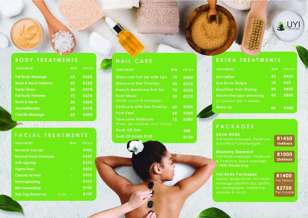 - UYI Medical Spa will provide a comforting, yet stimulating, atmosphere in which customers will be able to relax both their body and mind, reconnecting their daily lives to their true purpose through a wide range of services including massage, body works, energy works, and hair styling.